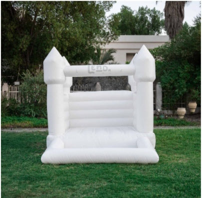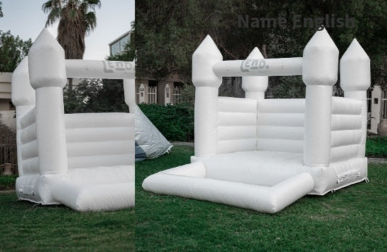 Introducing our exciting inflatable play haven for kids ! This vibrant inflatable features a sleek white design with a ball pit including transparent balls.